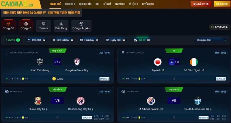 - Soi kèo & Tỷ lệ kèo – Góc chuyên sâu cho dân cá cược: CakhiaTV không chỉ phục vụ người xem mà còn hỗ trợ dân cược với chuyên mục Soi kèo được tổng hợp bởi đội ngũ chuyên gia giàu kinh nghiệm. Tỷ lệ kèo được cập nhật từ nhiều nhà cái lớn – giúp bạn có thêm góc nhìn trước mỗi trận đấu.