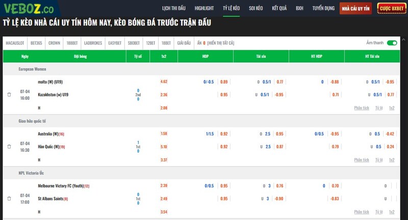 Bảng kèo cập nhật liên tục và chính xác trên Về Bờ Live