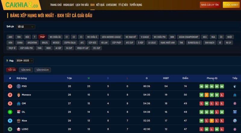 - Bảng xếp hạng: Cập nhật thứ hạng và số điểm của các đội bóng, giúp anh em dễ dàng theo dõi sự thay đổi trong các giải đấu lớn.